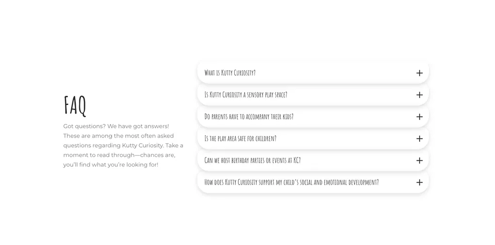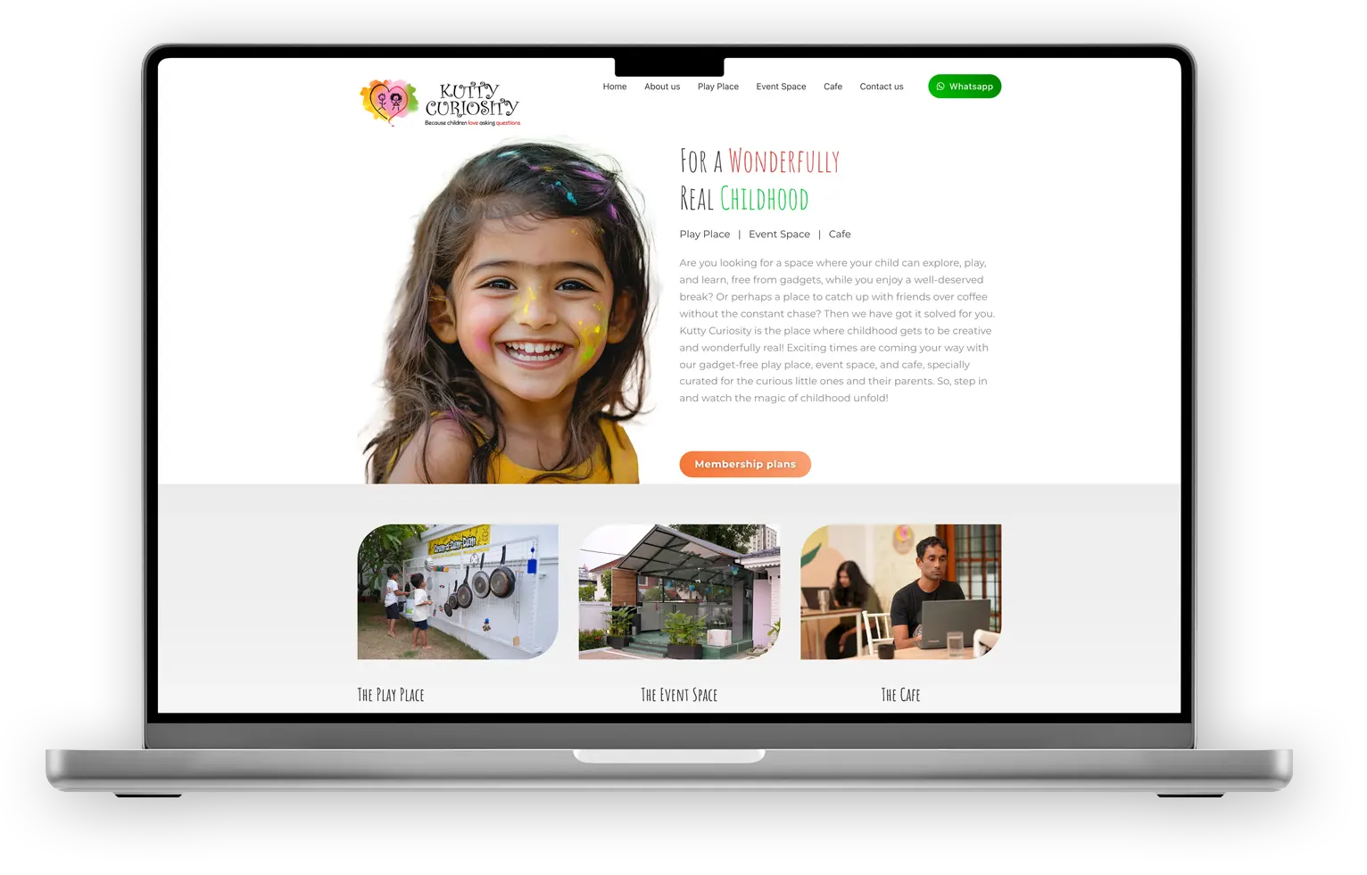 Kutty Curiosity, based in Kochi, Kerala, is a kids care and play area designed to spark joy, creativity, and learning. The website needed to instantly reflect a child-friendly atmosphere while remaining clear and approachable for parents.