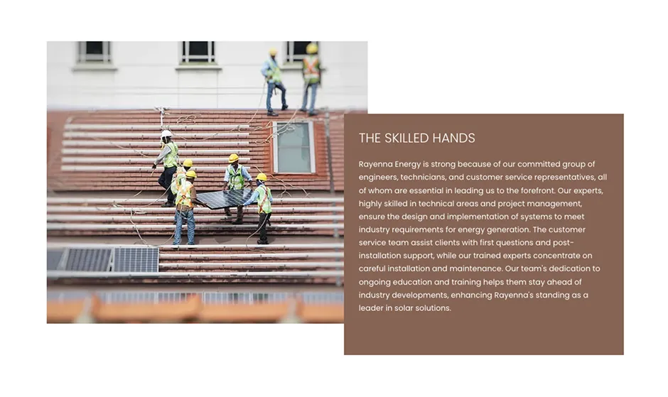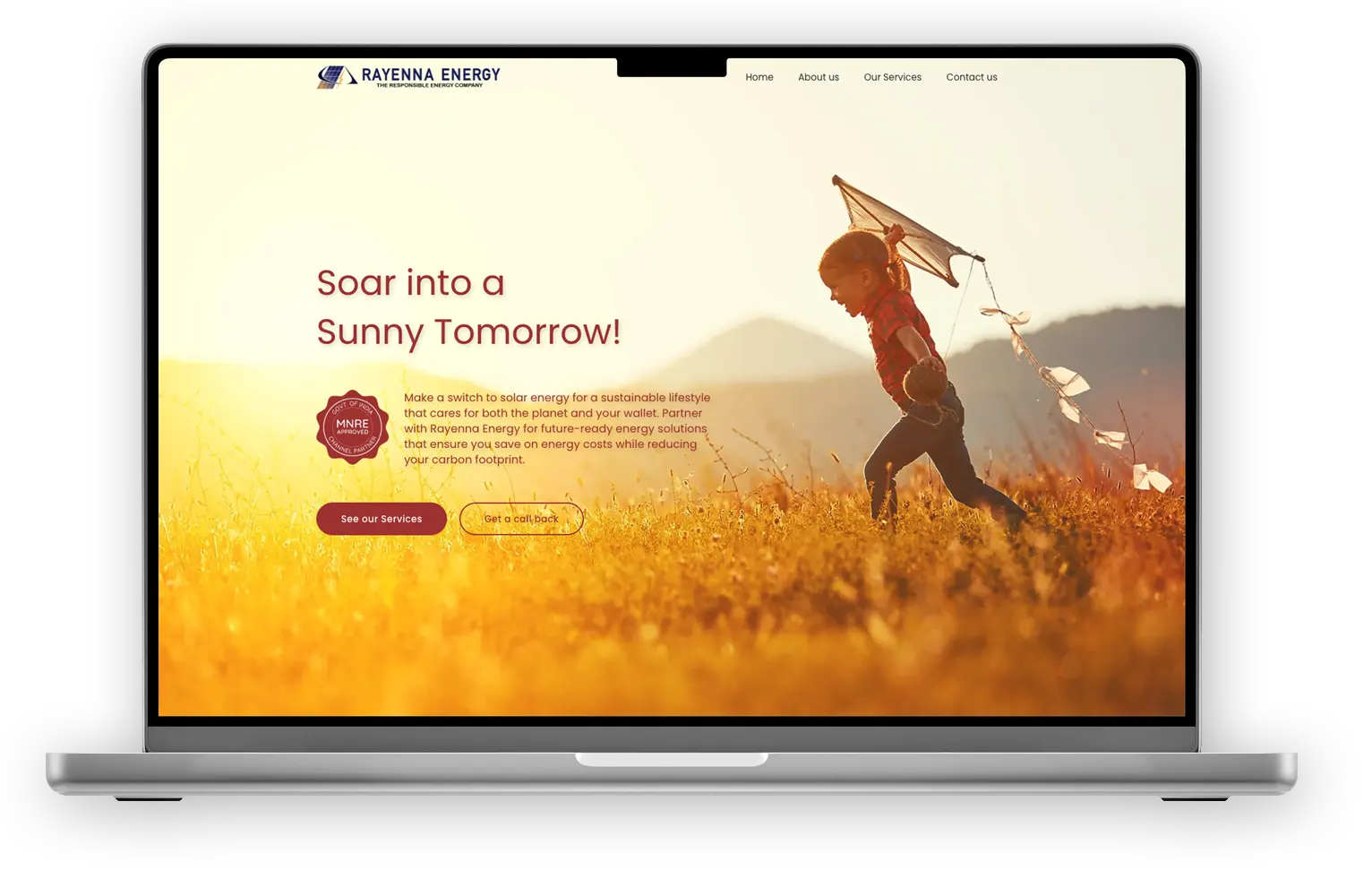 Here is a three-paragraph rewrite that matches the clean, thoughtful tone of your hero and home pages, while keeping it human and design-focused. Rayenna Energy, based in Kochi, Kerala, operates in the solar energy space with a strong focus on sustainability and trust. The goal of this project was to create a website that feels calm, modern, and easy to navigate, while clearly communicating the brand’s purpose and values.